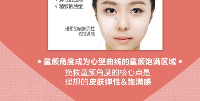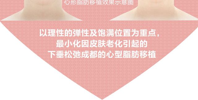 心形脂肪移植是抓住女性童颜的心型脸(heart line)——从额头开始往下慢慢出现饱满的脸颊,耳朵下面到下巴是慢慢往下收拢的的下巴线条,给整体脸部赋予自然的饱满感,整个人看起来更加富有弹性的童颜手术。令男人见了就有的感应!