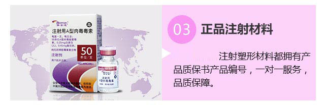 适应人群:适合咬肌肥大、腿粗、腋臭、抬头纹、眉间纹等动态纹